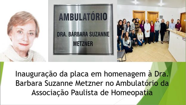 Em tributo à memória da Dra. Barbara, a Diretoria da Associação Paulista de Homeopatia decidiu homenageá-la, nomeando o ambulatório da APH como “Ambulatório Dra. Barbara Suzanne Metzner”. Esta iniciativa visa perpetuar sua notável contribuição à homeopatia e ao bem-estar de inúmeras vidas. Agradecemos a todos por se juntarem a nós nesse ato de reconhecimento e carinho pela Dra. Barbara Suzanne Metzner.