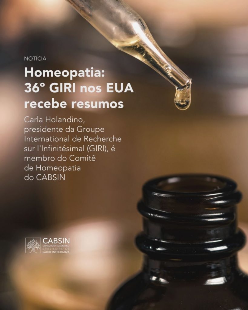 Está aberto até 15 de agosto de 2023 o prazo de submissão de resumos sobre Homeopatia para o 36º encontro anual do Groupe International de Recherche sur I’Infinitésimal (GIRI). O encontro será realizado pela primeira vez nos Estados Unidos, na Faculdade de Medicina da Universidade de Connecticut (USA), e também estará disponível na modalidade remota (modo híbrido). A presidente da entidade, Carla Holandino, é membro do Comitê de Homeopatia do CABSIN. Ainda compõe a diretoria do GIRI a Drª. Leoni Bonamin, também integrante do Comitê de Homeopatia do CABSIN.